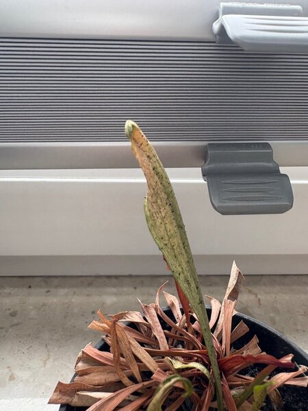 Witam. Zakupiłem muchołówkę na festiwalu roślin w Nowym Dworze Mazowieckim. Przez parę tygodni rosła dobrze. Była odpowiednio podlewana i miała dostęp do światła. Nagle zaczęła żółknąć, a potem na moje oko zaczęła gnić. Usunąłem wszystkie gnijące fragmenty roślin, jednak na jednym znalazłem mszyce. Po usunięciu zgniłych elementów, dzisiaj zauważyłem żółknięcie ponownie. Poniżej zamieszczam zdjęcia muchołówki oraz jej części. Proszę o pomoc. Pozdrawiam.