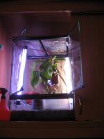 60x45x45, 60 to wysokość- na większe nie mam miejsca :-) i tak postępuje, ze tak powiem romantycznie :-) Tak ta świetlówka przypala mi dzbanek ale reszcie się podoba, ale to fluroa raczej mi wypaliła martwe częśdi w dzbanku ;-) Livida rośnie jak oszalała i parę innych :-) Odradzam do dzbanków Fluore-glo :-) Mogę oplątwe wstawić w zwykłe drewno czy musi spełniać jakieś wymogi specjalne? Czy takie wiszenie w powietrzu nie ogranicza produkcji osobników młodocianych?