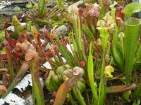 witam! Jesienia zdecydowalem sie na czesciowo samobojczy krok - zostawilem wszystkie gatunki mucholowek i kapturnic na cala zime w torfowisku, bez przykrywania, bez zapezpieczen - wszystko bylo skute lodem, przysypane sniegiem i bylem ciekawy, ktore rosliny moga sie przystosowac i zyc w polskich warunkach - tylko te bede w tym roku hodowal, oraz te ktorych nie testowalem. Mysle ze i wam moze sie przydac taka wiedza, nie bedziecie musieli tracic okazow wlasnych; Przezimowaly: S. flava ( ha! slyszalem jakies pogloski zeszlej wiosny ze nie da sie na dworze w polskich warunkach i skutecznie to obalilem bo cale lato rosla pieknie, a i obie kapturnice przetrwaly w dobrym stanie zime i sie podzielily juz ) Kapturnice purpurowe , kilka odmian ( to juz w ogole nie ma oczym mowic - zaden listek nawet nie przysechl, jak zasnely w lecie tak sie obudzily kolorowe ) S. catesbeai S. ladies in waiting ( tak jestem swirem i zaryzykowalem taka rzadka roslinke - prawie idealnie liscie sie zachowaly ) Rozne mieszance i sama bialolistna ( np. farnhamii, moorei ) S. purpurea x minor S. oreophila S. rubra S. psittacina - tak samo jak purpurowe - w nietknietym stanie (jeszcze kilka przetrwalo, ale pozapominalem ich nazwy ) D. filiformis - w ogole to chyba jeden z najlepszych mozliwych zakupow jesli zakladasz torfowisko, swietnie sie trzyma juz 2 rok - ofc ta odmiana zimnolubna D. rotundifolia - bez komentarza DM royal red, red dragon ( dziwne, czerwone mucholowki przetrwaly, a zielone padly ) Nie przezyly: DM Giant DM regular DM red-green S. flava Reddish S. juthatip Soper s. rehderi Jeszcze nie wiem; S Minor rzadkie odmiany mucholowek, bo przezylo 4, ale narazie nie wyrosly na tyle zeby rozpoznac ktore to. pozdrawiam i jesli ktos ma do sprzedania nasiona lub same zimnolubne rosiczki to pisac na pw