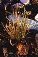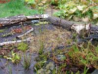 Jak się te rozchodniki i karmnik sprawują na mokrym i kwaśnym podłożu? Też chyba u siebie posadzę, fajnie uzupełniają całość. Udało Ci się jakoś przezimować pistie czy nie ma sensu próbować? rozchodnik i karmik ( ta trawka zolta i czerwone sukulenty dla niewtajemniczonych ) nie maja problemu z zyciem na kwasnym podlozu, no moze troche wolniej rosna i zime przetrwaly, wiec dla zakladajacych torfowiska polecam. pistie i cala reszta roslinek w oczku wodnym zamrozila sie i rozpadla na brazowe kawaleczki. W ogole w tym roku zlikwidowalem oczko wodne, poniewaz woda parowala i codziennie musialem dolewac, mnostwo os bylo, i zaby mi zamieszkaly mimo ze to bylo 30 cm szerokosci... oprocz zab w tej klodzie drewna mieszkaja jaszczurki A rosliny do grutnu oczywiscie. slyszalem jeszcze ze ktos robi torfowisko i chce obsadzic je inna roslinnoscia niz owadozerne. Wpadlem na ten sam pomysl w pierwszym roku i go wykonalem; plusy + - jak masz malo siana to zapelnia ladnie puste miejsca - wiecej miejsc do krycia to wiecej robali minusy - - korzenie sie rozrastaja i lacza z korzeniami owadozernych, ciezko rozdzielac - wrasta miedzy liscie kapturnic typu papuzia i uniemozliwia wyrwanie ich bez mozliwosci uszkodzenia owadozernego - zaslania owadozerne po pewnym czasie zrezygnowalem wiec po roku z tego, zamiast tego znalazlem kilka roslin, ktore maja malutkie korzonki i latwo je wyrwac w razie czego. oprocz tego do ozdoby polecam rozne fajnie wygladajace drewniane kawalki i moze kamienie, ale w tym roku z kamieni wiekszosci zrezygnowalem Jeszcze sprawa, ze sporo osob narzeka, na brak roslin, czy brak pieniedzy na zapelnienie torfowiska. Mialem tak tez na poczatku przeciez, kto widzial zdjecia to pamietam ze bylo duzo pustego. Jak to rozwiazalem kreatywnie? i wam tez tak polecam, to takie oczywiste a ile osob nie korzysta z tego; JEST TYLE SPOSOB ROZMNAZANIA OWADOZERNYCH 1. rozdzielasz bulwe, gdy sie rozdwoila, potroila,poczwornila itd 2. odrywasz listek, kladziesz w torf i tadam... 3. rozsiewasz nasionka, czekasz mniej lub wiecej czasu i tadam... 4. odrywasz korzen, ukladasz na ziemi, lekko przysypujesz i ... tadam 5. tniesz rosiczke w polowie , wkladasz gorna polowe tez do torfu i .... tadam Tak, wiec, gdy tylko zobaczycie ze np. kapturnica sie wam podwoila to rozdzielcie, ukorzencie i wymiencie na nowy gatunek. W ogole wiecej przestrzeni i ladniej sie prezentuje na torfowisku 5 rozdzielonych kapturnic niz jedna zlaczona. Wiec dziel i wymieniaj pozdrawiam A jeszcze zdjecia - od 3 dni pada i zonk