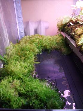 U mnie na tackach bez torfu w terrariach rośnie i ma się dobrze Czy się mnoży to mi ciężko stwierdzić, bo ja z kawałeczków nie rozmnażam, tylko kładę tam nadwyżki ścięte z doniczek... wszystko ładnie wstaje i rośnie. Podobnie bez dodatkowego podłoża rozrasta się w koszyczkach, w których jest sam jako podłoże do dzbanków. Na szybko fota. W pustych miejscach na tacy stoją doniczki z roślinami. Wody jest od 0 do 1 cm. Nawet U. longifolia się chwaści miejscami