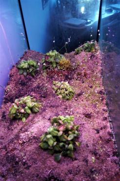 Po powrocie na stare miejsce - jest lepiej. Co lepsze - udało mi się wytrzebić częściowo pływacze (ich wpuszczenie do tego zbiornika to był błąd - od razu cały zarosły) przez przesuszenie podłoża. Skróciłem również dobowy czas naświetlania - obecnie to 11 godzin ha na dobę. Jak widać - cefalotusy rozrosły się w każdym z miejsc, a pływacze zostały zepchnięte tylko w te bardziej wilgotne rejony.