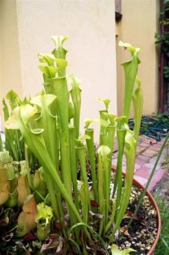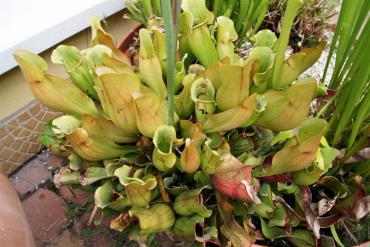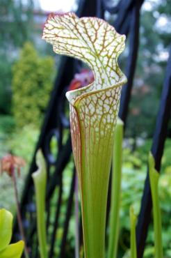 No dobra, moje kapturnice tarasowe nie mogą się na pewno równać ze szklarniowymi, ale niektóre, mimo potężnej ulewy, przetrwały w niezłym stanie: Sarracenia flava var. rubricorpora Sarracenia flava var. cuprea Sarracenia leucophylla Escambia County Jeszcze niezidentyfikowana przeze mnie własna krzyżówka A teraz rośliny, które w donicy przetrwały zimę na zewnątrz - niestety walczę z plagą ślimaków: Sarracenia oreophila - dziwnie zupełnie niewybarwiona Sarracenia purpurea ssp. purpurea