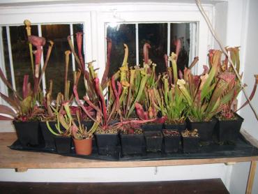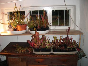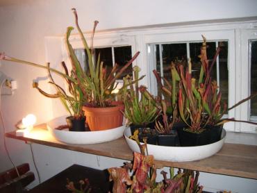 Witajcie! Chcę Wam pokazać miejsce, gdzie zimuję moje kapturnice i muchołówki (część, bo reszta śpi na zewnątrz na torfowisku). W tym roku zmieniam trochę sposób zimowania, ale po kolei. Na początek- podsumowanie sezonu. Oceniam go jako najgorszy w mojej "karierze" hodowcy. Złożyło się na to kilka czynników: - przemrożenie roślin na początku sezonu, po którym bardzo długo odbijały (padło ok. 15% hodowli) - bardzo zimne, deszczowe lato. Jedynym plusem była najpiękniejsza od lat wiosna- ciepła, wręcz gorąca z dużą ilością słońca. Prawdopodobnie tylko dzięki niej nie padło mi więcej roślin. A teraz miejsce zimowania (zdjęcie poglądowe). Jest to piwnica z dużym oknem, od strony południowej. Temp. obecnie tam panująca to ok.13*C, która przy mrozach -10 na zewnątrz spada do przyjemnych 7*C. Tegoroczna zmiana to zastąpienie kuwet, w których rośliny spędzają lato na rzecz czarnej folii, na której będą postawione rośliny. A- więcej miejsca zostaje do zagospodarowania na półce, B- łatwiej mi będzie kontrolować poziom wody (przy kuwetach ryzyko przelania na przełomie zimy/wiosny jest wg mnie większe). Tak to wygląda przed... ... a tak po. Oczywiście przed postawieniem doniczek na folię, dość konkretny roślinny haircut- wszystkie brązowe, suche, opadnięte liście są odcinane. Jak skończę przygotowywać rośliny do zimowania, zapodam jeszcze jedną fotkę- jak to będzie się prezentować w całości. To, co teraz widzicie, to nie wszystko Wszelkie pytania, komentarze walcie Moi Mili bez krępacji. Enjoy