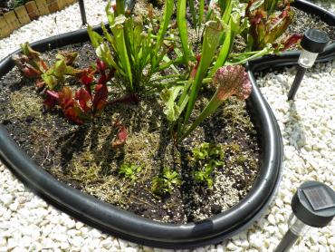 Spaghnum w pewnych miejscach jest, zaczyna się zazieleniać. Co do podlewania, destylka od góry, spryskiwanie codziennie wieczorem. Torfowisko będzie elementem ogrodu, który zostanie dokończony w przyszłym roku, w tym wyprztykałem się z kasy Zamierzam posadzić tam jeszcze ze 2 krzewy, no i oczywiście piękny, zieloniutki trawnik. Także jako całość zaprezentuję ogród z torfowiskiem w przyszłym roku.