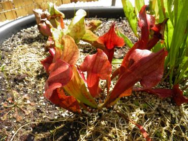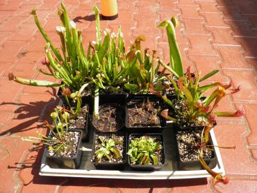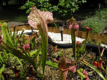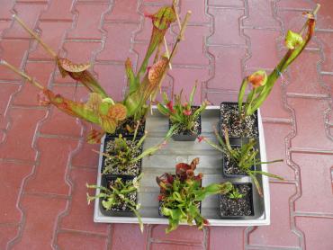 Witajcie! Również postanowiłem pokazać co nieco z mojej hodowli. Na początek torfowisko, które stworzyłem na wiosnę 2011 r. Wszelkie pytania na temat jego budowy itp. pod tym postem. Rośliny, które znajdują się na torfowisku: - D. rotundifolia - D. anglica - D. filiformis (wersja red i normalna) - D. filiformis x intermedia - D. intermedia - S. purpurea - S. chelsonii - S. leucophyla x Mitcheliana - S. x Mitcheliana - S. x stevensii - S. oreophila - S. x swaniana - S. x Farnhamii Mogłem o czymś zapomnieć A teraz foteczki: Oprócz tego chciałbym przedstawić Wam resztę kolekcji, głównie kapturnic. Pragnę nadmienić, że nie wszystkie wyglądają tak jak powinny- oczywiście przez "najpiękniejszy" od lat lipiec, nie są niestety wybarwione. Na początku sezonu kilka roślin przemroziłem, co najlepiej widać po purpurowej z kuwet. Wypuściła około 10-15 okropnie pokręconych, brzydkich liści. Dopiero ostatnie 3-4 pułapki są OK. Oto zdjęcia: S. flava var. altropurpurea x purpurea ssp. venosa oraz S. x Skywatcher D.m. Sawtooth i S. (flava var. maxima x purpurea ssp. venosa) x flava var. maxima To moje ulubione cudeńko- S. minor var. okefenokeensis oraz S. alata x catesbaei S. oreophila (Dekalb) x alata 'black tube' (Desoto) i S. leucophyla HYBRIDE- magiczna A oto totalnie zmasakrowany po lipcowych deszczach i chłodach capensis