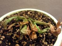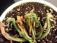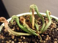 Witam! Słuchajcie mam pewien problem. Moją kobrę posiadam niecałe 2 lata, przez ten czas rosła wyśmienicie, aż do dziś. Zacząłem już ją zimować, temp. ok. 10 * C, piwnica z dostępem do światła, ograniczone podlewanie, czyli w sumie książkowo( wykluczam w tym wypadku przelanie bądź ususzenie). W piątek jak zaglądałem do roślin wszystko było ok, lecz w niedziele moim oczom ukazał się taki oto widok:
