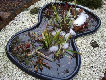16. Hej. Powiedzcie, dajcie info, jak przebiega u Was zimowanie kapturnic i muchołówek? Jakieś straty czy wszystko ok? Czy u kogoś pojawiają się oznaki budzenia się do życia? U mnie podczas mrozów rośliny zimujące w doniczkach na strychu całkiem zamarzły- torf stał się twardy jak kamień. Temperatura na strychu- -5*C. Kapturnice nic sobie z tego nie robiły, natomiast wszystkie liście u muchołówek oklapły, stały się wiotkie. Przyznam, że trochę się przestraszyłem. Na chwilę obecną podłoże rozmarzło, a muchole wyglądają tak, jak przed mrozami. Skłaniam się ku wnioskowi, że północnoamerykańskie owadożery są większymi hardcore'ami niż nam się wydaje. Są w stanie przeżyć na prawdę wiele. Podrzucam też fotkę mojego torfowiska, które obecnie całe zalane jest wodą. Ciekawie to wygląda. Czekam na info od innych forumowiczów. Pozdrawiam Masiol