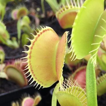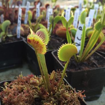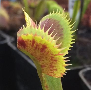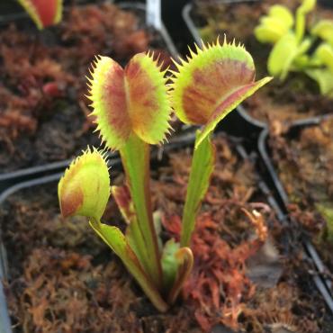 Takie plotki o spotty chodzą ale ma ją wielu hodowców i jakoś u wszystkich są takie kropkowane. Nniektóre pułapki nie mają tak wyrazistej cechy, nieraz mogą wyrosnąć całe zielone ale to chyba kwestia tego jak się rozłożą barwniki. Jedną mam pod lampą i tak ładnie się nie wybarwia więc to tez kwestia swiatła. Co do "obserwacja" to tak sobie zaznaczam rośliny z siewu, które mi się podobają żeby zobaczyć jak w przyszłym roku będą wyglądały i żeby zadbać o nie szczegulnie podczas zimowania