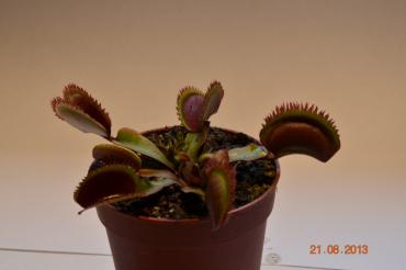 Bardzo ładna muchołówka, a nawet dwie, bo po środku masz młody odrost Z przesadzaniem możesz na razie poczekać, aż się troszkę zaaklimatyzuje. Ja swoje przesadzam czasami od razu, np. gdy widzę wystające korzenie od spodu doniczki. Woda z filtra RO jest jak najbardziej odpowiednia. Co to podlewania: jak woda wyschnie to warto zrobić jednodniową przerwę, chyba ze stoi w ostrym słońcu to wtedy najlepiej jak jest cały czas. Myślę, że lepszy będzie wschodni parapet. Powodzenia w hodowli