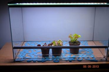 Cześć tak jak już wcześniej pisałem, postanowiłem zrobić pokrywę z taśm led. Jeśli jesteście zainteresowani to zamieszczam zdjęcia jak to wszystko wygląda. Światło jest na prawdę niezłe. Przyszłe terrarium oświetla mi cały pokój Jak na razie jest puste, ale mam nadzieję, że niedługo się to zmieni. Na razie myślę jakie rośliny będę w nim hodował. Całość zrobiłem z 2m taśmy 5050 białej o barwie około 6500k oraz z 2m taśmy 3528 czerwonej i niebieskiej. Całość zużywa około 30W. W razie pytań chętnie odpowiem Pozdrawiam
