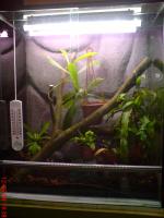 Chciałem się pochwalić moim dziełem, terrarium. Pokrótce, któregoś dnia stwierdziłem że zbuduję terra dla moich dzbanków. Zdobyłem szkło, znalazłem starą szafę w której wszytko wykleiłem, ściankę wyciąłem w styropianie i pokryłem atlasem (wodoodpornym) z barwnikiem. Na koniec wsadziłem gałąź no i roślinki. Wymiary: wys 80cm, szer 70cm, gł 50, oświetlenie daylight 18W i grolux sylvania 18W. Macie może jakieś porady, propozycje!?