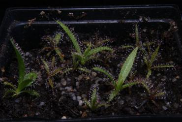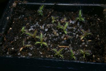 Kolejny update. Zdjęcia zrobione 24.01.2011. Po zrobieniu zdjęć miesiąc temu trzy roślinki dostały po jednej muszce owocówce. Efekty są bardzo dobrze widoczne. Największe dokarmione regie mają liście długości około 2-3cm. Dla porównania nie dokarmione rośliny przyrosły po jednym, małym liściu. Dzisiaj wszystkie zostały nakarmione, efekty za miesiąc...