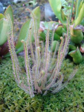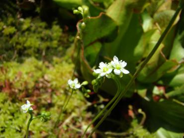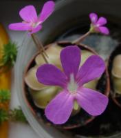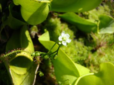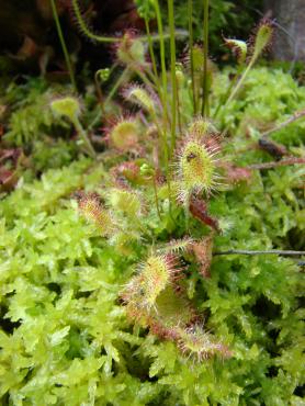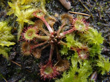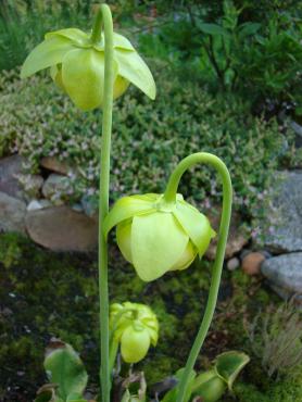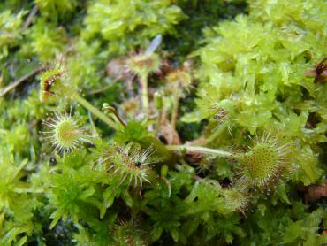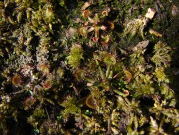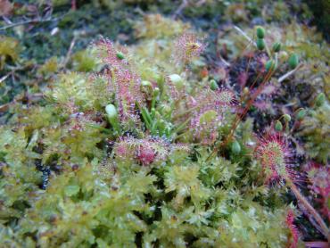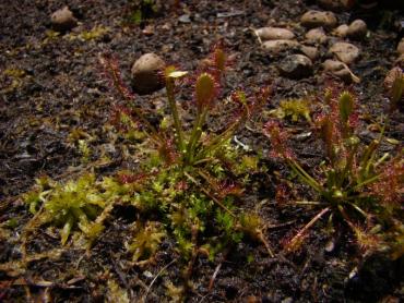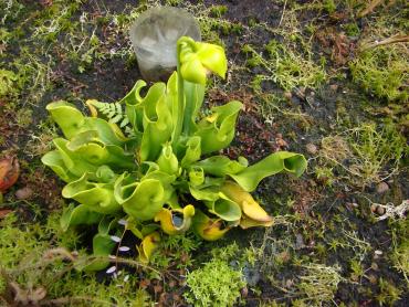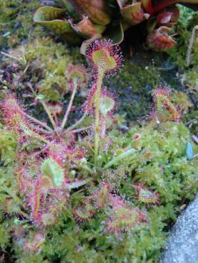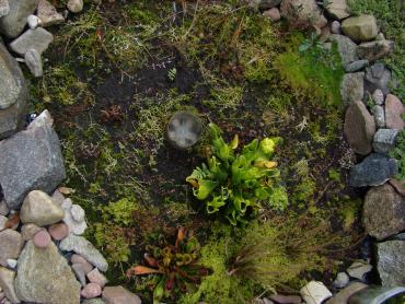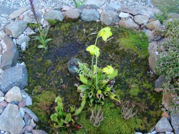 Jeżeli chodzi o stanowisko to z wschodu i zachodu są drzewa, a z południa mniej więcej w godzinach 11-14 torfowisko jest oświetlone bezpośrednio przez słońce. s. flavy na wiosnę wykiełkowały i rosną, ale są jeszcze małe. Muchołówki też mam, ale także małe i nie wiem czy przezimują. Dzięki na informację, właśnie się dziwiłem, że w ogóle nie chce się wybarwiać. Poszukałem trochę i wygląda na to, że jest to albo Sarracenia purpurea ssp. purpurea f. heterophylla lub Sarracenia purpurea ssp. venosa var. burkii. Ale obstawiam tą pierwszą. A ta druga moja kapturnica może też jest jakąś odmianą, która mniej się wybarwia. Co do torfowiska to ma ono wymiary 90x80 cm, głębokość około 40 cm. Dno wyłożyłem folią na niej położyłem doniczki i butelki 5L obcięte, dnem do góry, żeby zrobić przestrzeń na wodę. Na to poszły 3-4 worki torfu kwaśnego zmieszanego z keramzytem. Na środku jest włożona butelka przez którą sprawdzam poziom wody na torfowisku. Co do podlewania to torfowisko głównie samo sobie radzi. Jednak jak są długie susze nieraz muszę pomóc. Podlewam wodą, która podczas dużych deszczy, zalewała całkowicie torfowisko. Roślin faktycznie nie ma za dużo ale w porównaniu z tym co było na początku to teraz jest zapełnione. Chciałbym może na przyszły rok dokupić resztę polskich rosiczek oraz zbudować stanowisko dla polskich tłustoszy. Ale to wszystko w swoim czasie. -