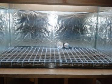 Zakupiłem wczoraj osram fluora 18W . Pozostałe dwie mają po 6400 k . Jako że w przyszłym tygodniu prawdopodobnie zamieszkają już tam lokatorzy zrobiłem pomiary Temperatura w dzień przy włączonym oświetleniu to 25-26 ( T w domu koło 22-23 ) na noc włożyłem dwie butelki 0,5 l z zamarzniętą wodą w środku temperatura rano wynosiła 20-21 . Higrometr mam kiepski ( nie mam pojęcia czy dobrze działa ) ale w dzień wskazuje powyżej 85% a w nocy powyżej 90% . Czy takie spadki temperatury i taka wilgotność będzie odpowiednia ?