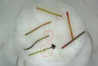 Znam też inny sposób rozmnażania D.binaty, a mianowicie poprzez pęd kwiatowy. Należy go odciąć, podzielić na fragmenty 2,5 - 4 cm i położyć na torfie lub na wacie z wodą destylowaną. Najlepiej zakryć pojemnik folią w celu podwyższenia wilgotności. Po około trzech tygodniach na łodygach pojawią się czerwone plamki z wybrzuszeniami - to stożki wzrostu. Z każdego wyrośnie jedna sadzonka.