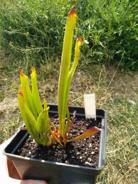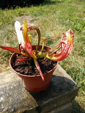 Moje 2 kapturnice prawdopodobnie dręczy jakaś choroba/pasożyt. Może ktoś miał podobne objawy i może coś doradzić? 1. S. x 'Sky Watcher' Jeden z pierwszych kielichów w sezonie wyrósł normalnie (ucięty na zdjęciu), ładnie się wybarwił itd. - kolejne już niestety nie. Liście są na końcu poskręcane i jest tak praktycznie od momentu gdy zaczyna wyrastać nowy liść. Roślina się podzieliła w tym sezonie i poskręcane liście są zarówno na matce jaki i młodych odrostach. Podłoże jest dobrej jakości, poziom podlewania optymalny, roślina stoi w pełnym słońcu na zewnątrz. Zarówno na roślinie jak i na podłożu nie zauważyłem żadnych szkodników. 2. S. flava var. rugelii Tak jak na zdjęciu - kilka dzbanków urosło na początku sezonu, jednak każdy liść nie był w stanie wyprodukować wieczka - wieczko tak jakby uschło podczas wzrostu. Roślina wypuściła klika liści po czym weszła w tryb wegetacji - praktycznie nie widać żeby cokolwiek nowego rosło. Co ciekawe mam jeszcze 2 doniczki z taką samą flavą (z podziału) - te rosną wolno w porównaniu do innych flav, które mam (może to akurat rugelii tak wolno rośnie?), ale rosną... Podłoże jest dobrej jakości, poziom podlewania optymalny, roślina stoi w pełnym słońcu na zewnątrz. Zarówno na roślinie jak i na podłożu nie zauważyłem żadnych szkodników. Ogólnie ww. stoją w kuwetach razem z innymi kapturnicami - tylko te dwie mają problem. Proszę o pomoc