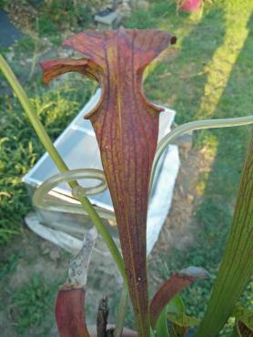 Dzięki za konkretne wypowiedzi i przykłady. To tylko utwierdza mnie w przekonaniu co do możliwości oceniania klonu PW OR 18 jako var. ornata, choć jak słusznie zauważyliście nie ma potrzeby od razu tego dopisywać Załączone zdjęcia prezentują piękne "ornaty" z - mam wrażenie - większym natężeniem koloru niż w moim klonie. Chociaż jak kiedyś szukałem zdjęć tego klonu to gdzieś widziałem, że u niego również gardło wpada w lekki fiolet/bordo. Może kwestia czasu lub kwestia zapewnienia spokojnego wzrostu w jednym medium (coś jak flava var. rubricorpora/atropurpurea). Tutaj ciekawostka - zdjęcie niżej prezentuje odrosty tego samego klonu z innej doniczki, która jest maksymalnie zasłonięta przez inne rośliny. Na roślinie praktycznie nie ma żyłek ale za to ma całkiem ciemne gardło Co by jednak nie mówić to nie umywa się do "Sand Mountain, Georgia" czy rośliny z książki Iglacego. Kolejne zdjęcie to najstarszy liść - praktycznie cały wpada w czerwień, co prawda od góry zaczyna powoli schnąć ale reszcie jeszcze sporo brakuje.