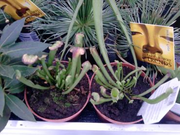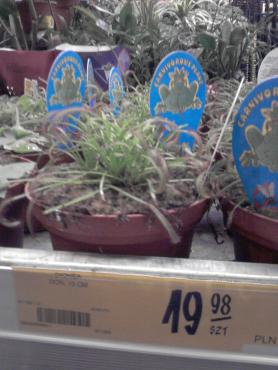 Castorama Warszawa róg al. Jerozolimskie, ul. Popularna. Wszystkie rośliny występują pod nazwą <dionea muscipula>. Bez znaczenia na wielkość cena ta sama 19...PLN Było też podłoże Hollas 80l za 12PLN pH 4.0 - 5.0 Warunki i tu idealne do zimowania tylko światła mało. a oto kilka fotek: