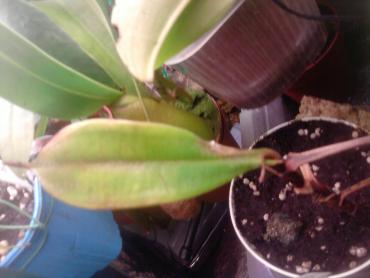 niestety ograniczenia sprzętowe ograniczają w zrobieniu lepszych zdjęć są 2 zdjęcia z rośliną w białej doniczce, to ta sama roślina N. ampullaria 'red'. chciałem pokazać jak najwięcej więc zrobiłem 2 zdjęcia: z żywym liściem i martwym.