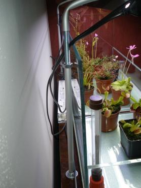 Aluminiowe rurki (fi 12) są nasadzone na śruby (fi 10) wkręcane od spodu. W rurki włożone są pręty gwintowane (fi 10), dzięki czemu przy pomocy nakrętek można swobodnie regulować wysokość na jakiej znajdują się świetlówki .