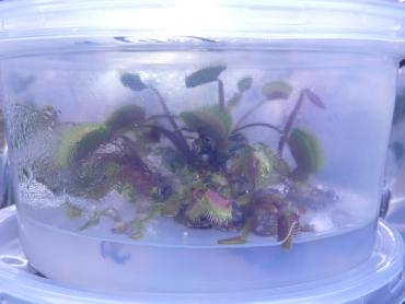 11. Wprowadzanie eksplantów do in vitro jest jak na początek rzeczą, która może człowieka zniechęcić. Przyczyn czernienia liści może być na prawdę sporo. Może pożywka była źle dobrana dla danego gatunku, lub liście których użyłeś były za stare(najlepsze do tego celu są młode liście, nie w pełni rozwinięte), a może po prostu podczas sterylizacji je ubiłeś i na pożywce sobie już tylko sczerniały do końca. Na początek przygody z in vitro proponuję zacząć od nasion pospolitych rosiczek, najlepiej jakichś afrykańskich(np. spatulata lub capensis) bo nie potrzebują stratyfikacji i w zasadzie jak byś ich nie sponiewierał sterylizacją to i tak powinny wykiełkować. Wprowadzanie części roślin zostaw sobie na później jak już z grubsza ogarniesz temat i będziesz wiedział na co stać podchloryn sodu albo NaDCC. Możesz tez próbować z gemmae rosiczek pigmejskich, jeśli będziesz miał świeże to na 99% kiełkują na pożywce po kilku dniach. ...a ode mnie powodzenia...
