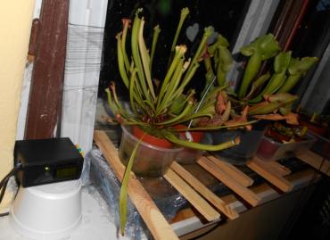Wilmington to niewielkie miasteczko w USA w stanie Karolina Północna. Miejsce to odwiedziłem 3 grudnia, a mimo to temperatura powietrza na zewnątrz wynosiła 19*C. Pierwszym potencjalnym siedliskiem muchołówki, jakie odwiedziłem, był park stanowy Carolina Beach State Park. Przy wjeździe do parku stoi chatka, w której zorganizowano małą wystawkę dot. owadożerów plus niewielkie terrarium z muchołówkami, kapturnicą (S. purpurea) i rosiczkami (D. capillaris):