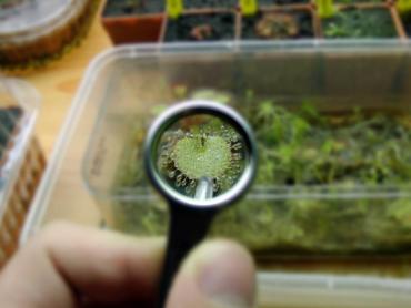 ciężko w palce chwycić ze względu na rozmiary tego maleństwa (doniczka ma 4x4, a ten kikucik grzybowo-wykwitowy na brzegu doniczki po lewej zauwazylem dopiero dzisiaj), mimo to chwyciłem właśnie opisany kikutek i porównałbym go do małej gąbeczki, która po ściśnięciu dała pomarańczowawą maź w małej ilości, reszta kikutka przypominała coś gumowego. kikutek nie ma włosków ale tak jakby składa sie z kilku ramion - przypomina strukture koralowca. czarne główki po pomacaniu zlały się z resztą ciałka kikutka. do bitej śmietany bym nie przyrównywał ale na pewno coś gumowatego a'la pieczarka