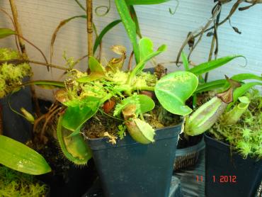 Witam, od dłuższego czasu zbierałem się do zrobienia nowego terra dla moich nizinnych dzbanków, bo w starym domku miały strasznie ciasno, do tego stopnia, że przy przeprowadzce zobaczyłem że mam jakieś dzbanki o których nie wiedziałem link do starego tematu: http://www.rosliny-owadozerne.pl/Terrarium...ch--t12975.html W koncu postanowiłem, że robie porządne wielkie terra, początkowo założenie jeśli chodzi o wymiary było takie 250cm długości 90 cm szerokości i 200 wysokości ale w pewnym momencie pomyślałem jak wniosę taką konstrukcję do pokoju ? ani przez drzwi , ani przez okno. W związku z tym musiałem się ograniczyć do wymiarów 250 długość 90 szerokość i 155cm wysokość - okno u mnie w pokoju przez które była wsadzana stalowa konstrukcja do tera ma tylko 160cm i to właśnie ten wymiar mnie ograniczył KONSTRUKCJA: ramy do terra pospawałem ze stalowych kontowników o szerokości 2,5cm pomalowane podkładem i farbą, w konstrukcję wprawiłem przeźroczyste płyty poliwęglanowe o grubości 10mm, tylko przód został wykonany z trzech tafli szkła o grubości 4 mm OŚWIETLENIE: 2 x 54w t5 narva cool day lighy i sylvaniauxline plus oraz 70w mth TEMPERATURY: w nocy 19C w dzień koło 26C trochę niskie bo jednak jest to duża przestrzeń i świetlówki nie i mth nie są w stanie dociągnąć do 30, w związku z tym jeden bok , góra i tył zostały obłożone styropianem ale nie za wiele to dało. WILGOTNOŚĆ: 90- 98% Niestety nie mam własnego aparatu i robienie zdjęć i uwiecznienie postępów w pracy każdego dnia było by bardzo uciążliwe. Wstawiam zatem trochę zdjęć gotowego projektu, wraz z mieszkańcami rafflesiana var. alata Młodziutka merriliana Mirabilis poring Młode pokolenie Northiana Thai Insignis A na tego macie jakieś pomysły co to meże być ??? Moje giganty od lewej gracilis ampularia i mirabilis Insignisy Thorelli Belli Mirabilis x khasiana Jakies pomysły co to ?? Kerri ??? Mirabilis var khasiana Wszelkie komentarze mile widziane