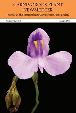 W numerze: Do bears disperse Darlingtonia? The intricate Pinguicula crystallina/hirtiflora-complex. Prey capture patterns in Nepenthes species and natural hybrids - are the pitchers of hybrids as effective at trapping prey as those of their parents? Germinating Nepenthes seed: Putting myths to rest. Resolution of the relationships within the North American pitcher plant genus, Sarracenia. Cultivation of Australian aquatic insectivorous plants. Giant Cephalotus of unknown origins. New cultivars:Dionaea muscipula 'Spotted Hyena' . Carnivorous plant cultivar names registered in 2014 . Grex names published by the International Nepenthes Grex Registry .