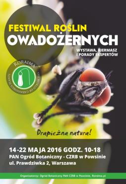 Mamy ogromną przyjemność zaprosić Was na drugą edycję Wystawy Roślin Owadożernych, która odbędzie się Ogrodzie Botanicznym Polskiej Akademii Nauk – Centrum Zachowania Różnorodności Biologicznej w Powsinie (dla przypomnienia - Powsin mieści się w południowej części Warszawy). To niezwykle malownicze miejsce, a konkretnie szklarnia "Zielony Raj", zamieni się właśnie w istny raj dla każdego hodowcy roślin owadożernych, ale nie tylko - będą przewidziane również atrakcje skierowane typowo w stronę po prostu ludzi zainteresowanych światem, przyrodą, a nie wyłącznie hodowców. W programie: - Wystawa Roślin Owadożernych - Kiermasz Roślin Owadożernych - dwie strefy (początkujący oraz kolekcjonerzy)) - Specjalnie przygotowane niespodzianki i atrakcje tylko dla gości Festiwalu! Termin: 14.05.2016 - 22.05.2016 Polska Akademia Nauk Ogród Botaniczny Centrum Zachowania Różnorodności Biologicznej w Powsinie 02-973 WARSZAWA ul. Prawdziwka 2 Wstęp na wystawę w cenie wstępu do Ogrodu Botanicznego (10zł bilet normalny, 7zł ulgowy - weekend, 6zł i 4zł w dni robocze). Dyskusja na temat wystawy - TUTAJ.