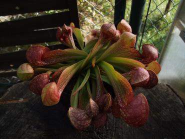 Na dworze już coraz niższe temperatury ale za to rośliny są przez to świetnie wybarwione. Sarracenia purpurea ssp. purpurea "Rose Lake Fen, Michigan County, Canada" Sarracenia purpurea ssp. venosa var burkei f. luteola x purpurea var. purpurea "Veinless form" Dionaea muscipula 'Trev's Red Dentate' Sarracenia psittacina var. okefenokeensis, Clone 2, 1985 imported from Lee´s botanical garden, Miami Sarracenia leucophylla 'Schnell ghost, yellow flowered, white green" Drosera filiformis var. filiformis x filiformis var. tracyi - powoli już szykuję się do spoczynku ale nadal ma około 30cm liście Dionaea muscipula 'Green Sawtooth'