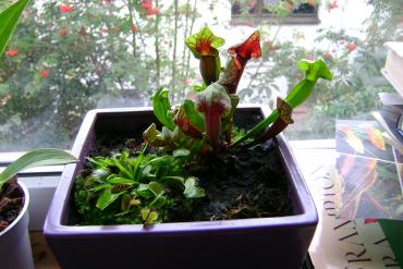1. Na pewno jest to jakaś popularna odmiana dzbanecznika, która nie jest szczególnie wymagająca. Czy wysoka wilgotność jej nie zaszkodzi? ( stał przez pewien czas na parapecie, rósł ładnie ale nie wytwarzał dzbanków dlatego postanowiłem go wsadzić w terra)