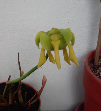 18. Mój przyszedł już z rosnącym pędem więc kwiatek nie w pełni jest moją zasługą no i aktualnie roślinka też tylko w zielone inwestuje. Ale zauważyłem że bisquamata (Baines Kloof) kwitnie tylko jak ma duuuuużo słonca więc z Betty's bay pewnie podobnie. P.S. Biedronko zakwitł gratisowy pływacz który jest u mnie, niestety kleistogamicznie wiec nadal będzie NN.