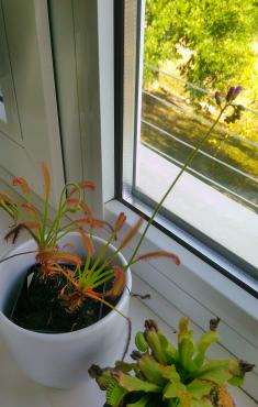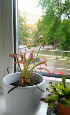 1. Troche słabo widać. Czy te roslinki mają tak wysoko trf, że zaraz będą same dotykać folii? Doświetlałeś je jakoś, że już Ci muchołowka kwitnie? Nie zimowała?