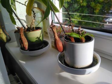 6. Nie utopi się? U mnie to inaczej wygląda. Te spodki z wodą nie są połączone w żaden sposób z rośliną. Sorki trochę się zagloniły ale ostatnio nie mam czasu ich oczyścić. Podlewanie dzbaneczników tylko z góry. W spodkach jak odparuje to dolewam