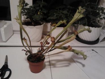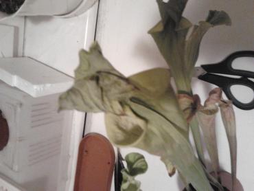Witam, mojej kapturnicy zaczęły opadać liście, daszki zaczęły się zwijać. Warunki - przedtem południowy parapet - teraz (zimowanie) północny ganek. Rośliny szoku jeśli chodzi o temp raczej nie odniosły. Obecnie temperatura utrzymuje się ok. 10*. minimalna ok. 6-7* max 14*. Co może być przyczyną? Myślałem, że przesuszenie, ale po podlaniu nie poprawiło się a już raz mi trochę przeschła. Grzyb czy co?