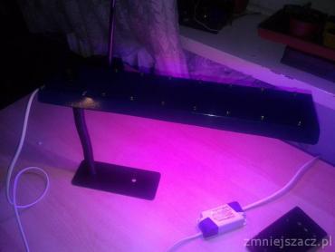 1. Witajcie. Na początku chciałbym podziękować użytkownikowi forum Emdine, za chęć do złożenia lampki ledowej. Mimo, że zadałem wiele pytań, na wszystkie mi odpowiedział. Wspaniała robota. Ale przejdźmy do rzeczy. Poprosiłem go na początku o lampę 6W, ale po zastanowieniu, odesłałem mu i poprosiłem o 14 W . I o to jest. Jest to lampa złożona z 6 diód 1W Deep Red, 6 diód 1W Royal Blue i 2 diód białych. Po miesiącu, czy dwóch wstawię efekty działania naświetlacza na rośliny. Co o tym myślicie? Odległość od diód do siewek/roślin wynosi 10 cm. Mam nadzieję, że wybarwi mojego capensisa 'all red'. Całość na parapecie okryłem jeszcze folią aluminiową, aby odbijała światło. Oczywiście od strony okna nie jest osłonięte. A o to zdjęcia: http://zapodaj.net/83304eeb0792d.jpg.html http://zapodaj.net/067d1505636b4.jpg.html http://zapodaj.net/c1e6f7b56f261.jpg.html