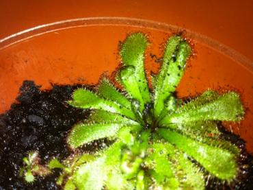 Dokarmiać możesz, kiedy rosiczka ma już owadożerne listki, ale oczywiście odpowiednimi owadami (chodzi mi o wielkość). Myślę, że najlepiej jakbyś dokarmiał teraz muszkami owocowymi. W internecie można kupić nawet słoiki z ich hodowlą.