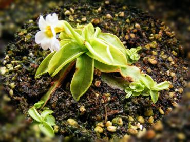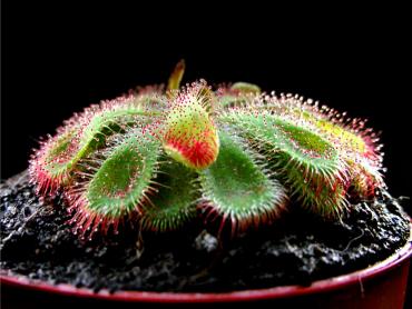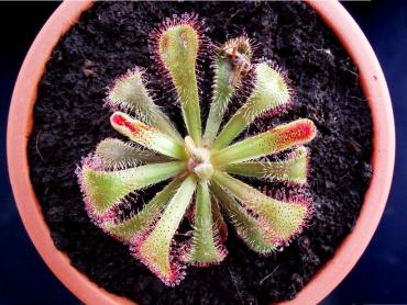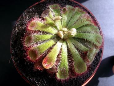 Niestety - doniczki z siewkami regii zaatakował grzyb, podejrzewam zgorzel korzeni. Siewki zaczęły momentalnie czernieć i zamierać. Wielka szkoda, bo niektóre były już całkiem spore - największa ponad 3 cm średnicy. Rzecz działa się 2-3 tyg. temu. Całość podlałem kilka razy topsinem, jednak do dziś przetrwały tylko dwie siewki i to malutkie, w tym jedna ma zczerniałe końcówki listków, ale jakoś przeżyła. W dodatku obie nie chcę rosnąć i nie mają rosy