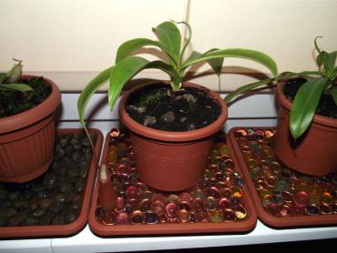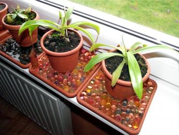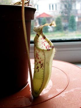 Ukorzenianie zakończyło sie pełnym powodzeniem . Oba dzbaneczniki rosną. N. ventrata końzy "pompować" swój pierwszy u mnie dzbanek i zaczęła pracować nad kolejnym (na młodszym liściu) . Co ciekawe, ten nowy dzbanuszek nie przypomina tych, które miał odrost, jak do mnie trafił (widać je na początku tematu). N. venricosa na razie nie dzbankuje ale myślę, że zacznie na wiosnę. Jak widać, do moich "parapetowców" dołączył jeszcze mały Hokerianek i również już zdążył u mnie wypuścić jeden dzbanek. Wczoraj podmieniłem w podstawkach keramzyt na hydrożel. Wygląda o wiele lepiej, ale zobaczymy, jak będzie się spisywał na dłuższą metę. No i na koniec dzisiejsze fotki roślinek, których dotyczy ten temat: