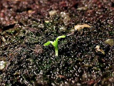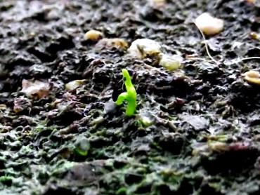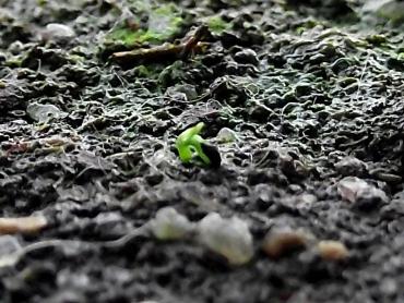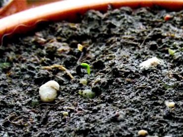 Roślinki kiełkują dalej - słoneczna pogoda nadal dopisuje . Do tej pory pojawiło się 7 kiełków z 11 wysianych nasion, z których największy uległ pierwszemu rozgałęzieniu, jak widać na fotkach.