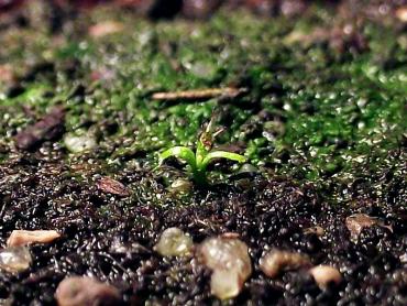 Siewki regii dalej sobie rosną. Doszła jeszcze jedna - dopiero co wzeszła. Niektóre siewki mają po dwa owadożerne listki z rosą, jak widać na załączonych obrazkach. Za 2-3 dni mam zamiar położyć na nich lekko rozgniecione muszki ziemiórek Wszystko jest cały czas maciupkie - wysokość największych siewek wynosi 6-7 mm - no "w porywach" do ośmiu .