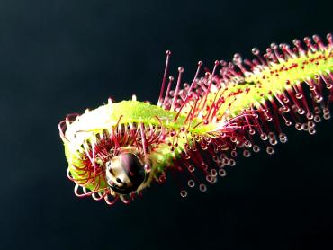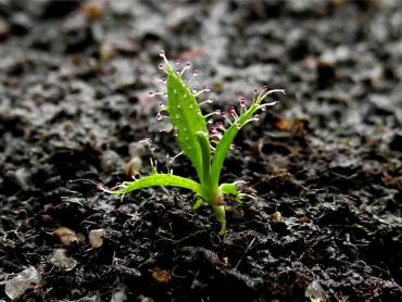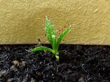 Dzisiaj mija równy miesiąc od wysiania, więc czas na drobne podsumowanie. Wzeszło 7 z 11 nasion, z czego jedna siewka padła (podejrzewam larwy ziemiórek, jako winowajców tego padnięcia). Doniczki stoją zwyczajnie na południowym parapecie i pogoda była całkiem słoneczna przez ten miesiąc, jak na tę porę roku. Od kilku dni doświetlam wieczorami zwykłą żarówką energooszczędną o mocy 15w (deklarowany odpowienik zwykłej żarówki 75W, ale to chyba jest zawyżone ), umieszczoną w zwykłej lampie biurkowej. Na 4-ech siewkach (z 6-eściu) pojawił sie juz trzeci listek (owadożerny), w tym na jednej roślince rosy jest już na tyle dużo, ze położyłem wczoraj pierwszy, mikroskopijny kawałeczek (1x1,5 mm) pokarmu dla rybek. Jakieś fotki dodam za kilka dni , bo maciupeńkie to wszystko .