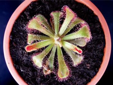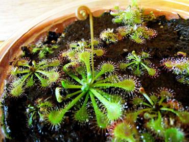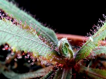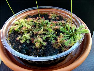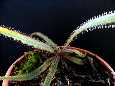 Mam ją od niecałego miesiąca (16-go będzie miesiąc) - na razie rośnie i wypuszcza cały czas nowe liście. Rosę też ma - ale tylko na 3-4 liściach. Wg niektórych opinii ten gatunek daje sobie radę całkiem dobrze w warunkach parapetowych - chyba jako jedyny z trzech sióstr. Zobaczymy co dalej - terrarium na razie nie ma i nie będzie.