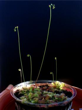 Hmm... być może masz rację, Cephalotus, z tą monokarpicznością D. dielsiana. Nie będzie mi dane tego jednak sprawdzic, gdyż jestem już niemal 100% pewien, że te moje nasionka, kupione jako D. dielsiana, okazały się być nasionami D. spatulata. W związku z czym muszę zmienić nazwę topika na inną, niestety Dzisiaj pędy kwiatowe są już bardzo długie - niektóre mają ponad 10 cm i mają spore pączki kwiatowe, wypuszczają je wszystkie bardziej wyrośnięte egzemplarze rosiczek. Jedna nawet dwa pędy wypuściła. Zrobię zdjęcia, jak uda mi się wrócić z pracy odpowiednio wcześnie . A póki co, obiecane w poście nieco wyżej, zaległe fotki rosiczek wypuszczających pędy kwiatowe - fotki sprzed ponad tygodnia, robione 22 sierpnia: Cephalotus: Zmieniłem tytuł tematu.