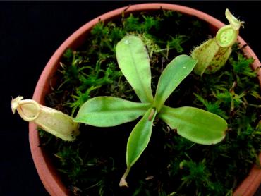 Od posadzenia tych sadzonek minęło ponad 1,5 miesiąca. Proces aklimatyzacji minął - woreczki były stopniowo coraz bardziej otwierane, aż w końcu, od prawie dwóch tygodni, zostały całkowicie usunięte. Dzbaneczniki są cały czas trzymane na parapecie wschodnim, na podstawkach z kermazytem, zraszam je nieregularnie. Ventracie zostały ucięte dzbanki, bo zaczynały brzydko wyglądać. Obie sadzonki wypuściły po kilka liści, jednak zalążki dzbanków zamierają - rośliny nie dzbankują. Może dopiero na wiosnę doczekam się jakichś dzbanków. Obie roślinki zostaną wkrótce przesadzone do bardziej estetycznych doniczek (małżonka nalega ), więc przy okazji stwierdzimy, jak tam się mają systemy korzeniowe. No i po dwie, aktualne, fotki Ventraty i Ventricosy:
