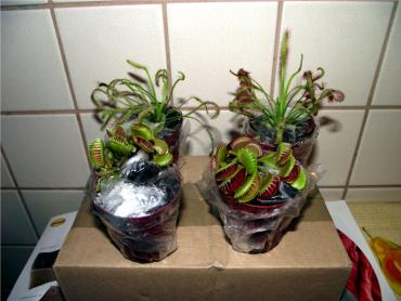Dzisiaj przyszła nagroda za 2-gie miejsce w konkursie na roślinkę miesiąca (edycja sierpniowa). Przesyłka od sponsora - firmy Wild-Nature. Roślinki w dobrej kondycji, przysłane razem z podłożem (jedna muchołówka leżała luzem na podłożu). Jak widać, przyszły dwie odmiany D. capensis (Albino i chyba Typical) i dwie odmiany muchołówek, ale jakie konkretnie, to muszę do nich napisać. Tak więc jeszcze raz dziękuję organizatorom konkursu i sponsorowi. Frajda jest naprawdę duża , nagrody to nie żadna ściema, tylko pełnowartościowe rosliny, więc zachecam Forumowiczów do uczestnictwa w tym konkursie Fotki jeszcze spakowanych roślinek i już posadzonych w docelowych doniczkach: