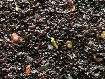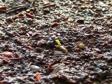 Wczoraj zauważyłem pierwszy wschód, dzisiaj są już dwa kiełki. Maciupeńkie, zielone przecineczki na tle czarnego torfu. Załączam fotki takie, na jakie pozwala mój aparat. Nawet widać skiełkowane nasionko .