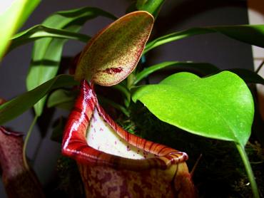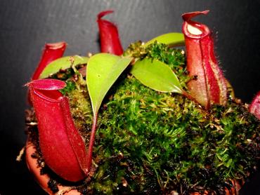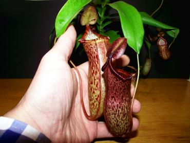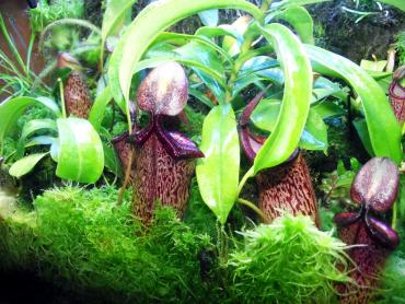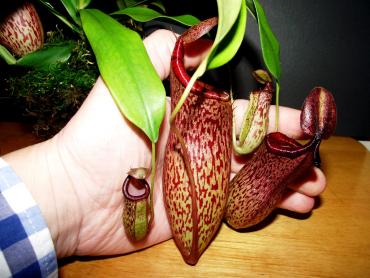 Fotki kilku mieszkanców terrarium: H. minor i D. falconeri: I na koniec mój ulubieniec. N. spectabilis x ventricosa. Zaczął wykształcać duże dzbanki i mam radoche